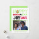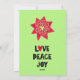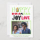 Agregue su propia foto y saludo personalizado a esta tarjeta de vacaciones de Kwanzaa moderna y trendy. ¡Compruebe el diseño de paz amor y alegría en el reverso! Es divertido y moderno, colores tradicionales de Kwanzaa verde, rojo y negro y una mazorca de maíz. ¿Puedes encontrarla?