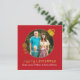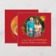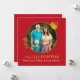 Elegante tarjeta de bienvenida cuadrada de Navidades de estilo plano hecha en rojo, con una zona de fotos redonda decorada con acentos dorados para que parezca un adorno de árbol. Texto gráfico de tono dorado que dice Feliz Navidad. Personalice el texto en blanco para leer lo que desee y reemplace la fotografía con su propia imagen, para una forma festiva y elegante de enviar sus saludos de vacaciones. Hay productos que coinciden.