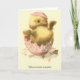 Tarjeta retra/del vintage del húngaro de Pascua de felicitación. ¡Polluelo del bebé que trama de un huevo de Pascua! ¡Ünnepeket de Kellemes Húsvéti! ¡Pascua feliz!