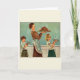 Tarjeta retra/del vintage de la acción de gracias de felicitación. ¡Mamá y sus niños que llevan el pavo y los ajustes asados a la tabla que se servirá! ¡Gran tarjeta para cualquier ocasión festiva!