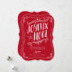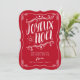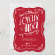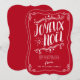 Envíe la familia y a los amigos un deseo de las Felices Navidad con esta diversión y tarjeta de felicitación plana caprichosa de Joyeux Noel. Tipografía imaginaria de las características y adornos a mano en el texto blanco en un fondo festivo del rojo del día de fiesta.