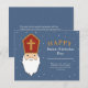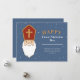 Una feliz tarjeta de felicitación del Día de San Nicolás con nieve sobre un fondo azul y textos personalizables en la parte delantera y trasera. El Día de San Nicolás se celebra a principios de diciembre en Europa, él reparte regalos, naranjas o caramelos a los niños buenos.