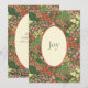 Celebre la temporada con esta vibrante tarjeta de vacaciones plana 5x7 con un elegante diseño floral en ricos tonos verdes, rojos y amarillos. La parte frontal muestra un mensaje claro de “JOY” en una oval crema, mientras que la parte posterior ofrece espacio para un mensaje personalizado, nombre y fecha. Con su elegante diseño y paleta festiva, esta tarjeta es perfecta para enviar saludos alegres a amigos y familiares.