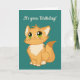 Fluffy Naranja Cat Design Greeting Card con color de fondo de personalizable. Texto externo: ¡Es tu cumpleaños! El texto interno dice: "¡Espero que sea el mimo del gato! ". O personalizar con su propio texto y fuente.