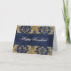 Bonita tarjeta de felicitación del personalizado Hanukkah. Un diseño azul bonito sobre damasco color marrón en el fondo, con una franja central de aspecto mármol azul que tiene Happy Hanukkah, en texto de escritura blanca. Saludo y firmas dentro, con una elegante decoración de Star of David. Personalizar esta gran tarjeta de vacaciones con tu propio texto dentro.