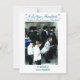 Esta tarjeta de Channukah presenta a un grupo de personas dedicadas a la oración en el Muro Occidental, un lugar religioso significativo. La imagen capta una mezcla de adultos y niños, todos vestidos con atuendo judío tradicional, incluyendo gorras negros y chales de oración. Los individuos sostienen libros de oración, profundamente inmersos en su observancia religiosa. La escena se sitúa contra el antiguo muro de piedra, añadiendo un contexto histórico y espiritual a la imagen.