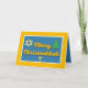 Esta tarjeta de felicitación de Chrismukkah presenta las palabras, "Merry Chrismukkah" como punto focal en dorado sobre un fondo azul. La Estrella de David, un árbol de Navidad y una menorá destacan cada una de las festividades. Este es un gran diseño para enviar felicitaciones interconfesionales a amigos y familiares. Derechos de autor Kathy Henis