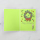 Celebra la temporada de Navidades con esta genial tarjeta de felicitación kiwi! Con un fondo de rayas marrones con bayas y lámparas de colores festivos, este kiwi está definitivamente de humor para los Navidades con su sombrero de Santa! En el interior encontrarás una corona de vacaciones con un mensaje que dice "feliz fiesta". Haga clic en una imagen para ver una camiseta: