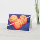 tarjeta de felicitación con una fotografía hermosa de un corazón hecho de lanas anaranjadas en un fondo azul brillante. ¡Perforé una aguja que hacía punto a través de ella tengo gusto de una flecha a través del corazón! ¡Un diseño muy gráfico que es una toma linda y peculiar en amor y romance!