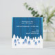 Un paisaje invernal lleno de pinos nevados y una noche de tormenta de nieve hace que esta tarjeta de vacaciones sea una forma invernal de enviar buenos deseos.