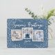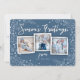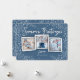 Envía a la familia y a los amigos un saludo moderno de Navidades con esta divertida y caprichosa tarjeta de felicitación plana que presenta un collage de tres fotos con fantástica tipografía con letras a mano y ilustraciones de temporada hechos a mano en blanco sobre un festivo fondo azul invernal. Patrón de coordenadas en la parte posterior.
