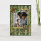 Tarjetas de felicitación de fiestas con estilo de álbum de recortes vintage con foto familiar. Rayas verdes, bayas de acebo y marco dorado para tu imagen y puedes cambiar el mensaje en la portada de esta tarjeta de fiestas. Mucho espacio en el interior para tu mensaje personal y nombre de la familia. Excelente diseño de TLS Designs.