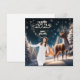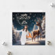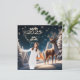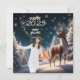 Una hermosa tarjeta de bienvenida de Año Nuevo con una serena escena invernal con un majestuoso ciervo bajo un cielo estrellado y nevado. Los árboles cubiertos de escarcha y los delicados copos de nieve crean un ambiente mágico y tranquilo. Esta tarjeta puede ser personalizada con una foto personal, añadiendo un toque único y sincero a sus deseos de Año Nuevo. Perfecto para compartir saludos cálidos y festivos con amigos, familia o colegas durante el año que viene.