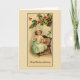 Tarjeta de saludo de Navidades Vintage/Victorianos. ¡Adorable joven acolchada bajo una rama hueca! ¡Feliz Navidad!