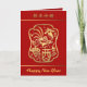 Año Nuevo chino de la tarjeta de felicitación vertical del gallo con el saludo en chino e inglés en fondo adaptable rojo + corte de oro del papel chino del gallo. El año es adaptable también. Postal a juego y pegatina. ------ "El gallo (chino simplificado: 鸡; chino tradicional: el 雞/el 鷄) es uno del ciclo de 12 años de los animales que aparecen en el zodiaco chino relacionado con el calendario chino. El año del gallo es representado por el 酉 terrestre del carácter de la rama. El nombre también se traduce a inglés como pollo. El gallo es el único pájaro incluido en el zodiaco chino. wikipedia-------