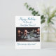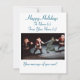 ¡Celebra la temporada navideña con esta tarjeta de felicitación única y caprichosa! La parte frontal de la tarjeta presenta a un jasid bailando alegremente con tres personas vestidas con trajes de Papá Noel. Esta encantadora combinación de imágenes culturales y navideñas añade un toque de diversión y alegría.