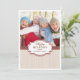 Un esquema de colores simple pero elegante de rojo, beige y marrón chocolate. El fondo beige texturizado está acentuado con cintas falsas rojas y marrones y presenta una gran foto de su familia con texto personalizable en el medallón central. ¡Divertido, festivo y trendy!