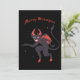 ¿Qué es mejor que un poco de oscuridad en las vacaciones? ¡Nada que podamos pensar! Tarjeta de Krampus con Merry Krampus diciendo en la titografía de letras negras. ¡Divertido, tarjeta de Navidades alternativos oscuros! Krampus tiene cuernos rojos y pezuñas y adornos en sus cuernos. Espacio para tu mensaje de vacaciones y nombres en la parte de atrás. Ver más Navidades góticos en nuestra tienda.