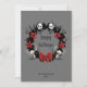 Los cráneos se sientan en una corona negra con puntitas, murciélagos y un arco para este gran diseño de tarjetas vacacionales oscuras. Añade tu nombre y año al frente (o elimina) y un mensaje de vacaciones al fondo.