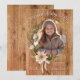 Envía deseos cálidos con esta encantadora tarjeta de vacaciones, que presenta tu foto personalizada enmarcada con un diseño ovalado adornado con flores de invierno. El fondo de veta de madera natural añade un toque acogedor y rústico, que complementa perfectamente el saludo sincero "Deseos de vacaciones más cálidos". Personalízala con el nombre de tu familia para crear un recuerdo festivo y atemporal.