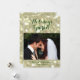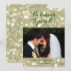 El tipo de letra verde oscuro sobre un fondo brillante acentúa tu foto en esta tarjeta dorada de Navidad.