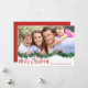 Tarjeta de fotos Garland manuscrita escrita de navidad de Feliz. La foto y el texto de este guión con letras a mano se pueden actualizar y personalizar con su foto y nombre de familia.