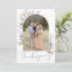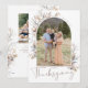 Tarjeta de foto de Acción de Gracias con hermoso follaje otoñal y foto arqueada. La parte delantera dice "Feliz Día de Acción de Gracias". Agrega una imagen adicional en la parte posterior y tu mensaje personalizado. Envía esta hermosa tarjeta de Acción de Gracias para bendecir a tus seres queridos en esta temporada festiva.
