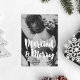 Una tipografía de pincel moderna para esta colección de tarjetas de fotos navideñas personalizables para recién casados.