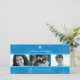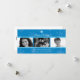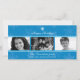 Muestre a su familia con tres fotos contra un encantador fondo de copo de nieve estacional acentuado por reglas turquesas. Su mensaje de vacaciones personalizado se destaca en blanco contra el fondo azul verdadero coronado por un solo copo de nieve blanco. Disponible en colores alternos con favores y franqueo a juego.
