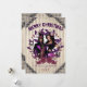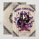 Encaje victoriano negro, papel pintado a rayas antiguo, una corona de Navidad con adornos de cráneos que rodean tu foto favorita. El saludo perfecto para una Navidad gótica. Parte de nuestra colección de Navidad Muy Alegre y Gótica.