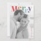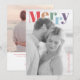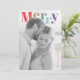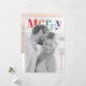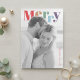 Envía felicitaciones navideñas alegres con este diseño de tarjeta de foto moderno y colorido. La parte delantera presenta la palabra audaz "Feliz" en una fuente serif multicolor elegante sobre su foto personal, creando un contraste brillante y alegre contra el suave fondo en blanco y negro. Perfecto para compartir el calor y el amor de su familia en esta temporada, la parte trasera incluye espacio para un mensaje de vacaciones completo, nombres y el año. Un diseño chic y minimalista que celebra la temporada de una manera fresca y moderna.