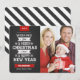 Fun y festivo rincones redondeados estilo perrito Navidades de pizarra de anuncios de tiza navidad greetings plantilla de foto sobre tarjetas planas de moda. Estilo rústico de pizarra con fondo negro con tipografía de estilo retro varsity y borde vintage. Añada su foto familiar favorita o la primera foto de su bebé de vacaciones y personalizar el texto. Forma moderna de enviar alegres saludos de vacaciones de invierno a todos sus amigos y seres queridos con elegante estilo urbano. Postal de correspondencia, invitaciones para fiestas de vacaciones y tarjetas de felicitación disponibles bajo petición. PCF13