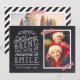 Personalizado económico imprimió tarjetas fotográficas de vacaciones con plantillas sencillas para la personalización. Este divertido diseño presenta tipografía de estilo lindo con letras a mano sobre un falso fondo de pizarra con cinta de washi de rayas rojas alrededor de tu foto. El texto dice "Espero que las vacaciones te traigan muchas razones para sonreír". Personalízalo con tus fotos, tu apellido, el año u otro texto personalizado. El lado inverso tiene espacio para fotos o texto adicionales. Utilice las herramientas de diseño para editar el texto, añadir más fotos y crear una única tarjeta fotográfica de vacaciones.