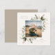 Tarjeta de foto plana con marco de follaje botánico festivo. Características, tipografía de color beige neutro y respaldo de color sólido a juego.