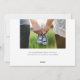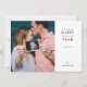 Esta tarjeta de foto de vacaciones de Año Nuevo es perfecta para anunciar un embarazo. Dice "Estamos esperando un Feliz Año Nuevo" con un espacio para la fecha de parto y el apellido de la familia acentuando una foto personalizable. La parte posterior incluye una segunda foto y un mensaje adicional.