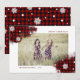 fondo rojo de búfalo enchapado en color agua salpicado con copos de nieve blancos y tu propia foto en el centro y el guión personalizado en elegante fuente serif