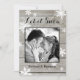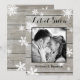 Ligeros copos de nieve sobre un fondo de tablones de granero acentúan tu foto en esta romántica tarjeta de vacaciones.