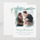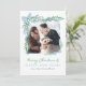 Personaliza esta caprichosa tarjeta de foto de vacaciones con lazo azul y verdor al estilo acuarela con tu propia foto y saludo de vacaciones. ¡Elige imprimirlas, recibirlas como descarga digital o ambas!