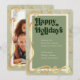 Festiva Tarjeta de Foto Felices Fiestas Verde Salvia y Dor