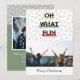 Moderna y trendy "QUÉ DIVERSIÓN" colorida con copos de nieve caprichosos y bloques de color, tarjeta de foto navideña.