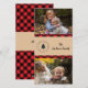 Tarjeta fotográfica de Navidad roja y negra con manchas de búfalo. Estilo clásico de leñador, diseño rústico de Navidades.