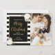 Festiva Tarjeta de foto navideña Floral Black Stripe de in