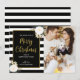Envíe sus deseos de vacaciones con estilo con esta tarjeta de Navidades con un diseño de rayas negras con flores de invierno de acuarela y una mezcla de acentos de Relieve metalizado de imitación dorada. Personaliza con tu saludo familiar y el año.