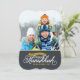 Moda simple moderna Hanukkah tarjeta de fotografía de vacaciones elegante caligrafía escritura tipografía sobre un falso fondo de textura de pizarra. Personalice el diseño con su foto y nombre de la familia personalizado. Haga clic en el botón "Personalizar" para añadir más texto y fotos en la parte posterior y crear su propio diseño único.