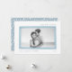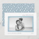 Elegante y sobrio, nuestra tarjeta de vacaciones de moda enmarca tu foto favorita con brotes de color agua en azul cielo polvoriento. Personaliza con tu personalizado saludando en la parte superior con elegantes letras grises, y agrega tus nombres y el año en la parte inferior. Un patrón dorado de pequeños pinos en blanco al hacer coincidir el azul-gris añade un atractivo festivo.