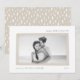 Elegante y sobrio, nuestra tarjeta de vacaciones de moda encuadra tu foto favorita con brotes de color agua en un puro color gris. Personaliza con tu personalizado saludando en la parte superior con elegantes letras grises, y agrega tus nombres y el año en la parte inferior. Un patrón dorado de pequeños pinos en blanco al igual que el grano de trigo añade un atractivo festivo.