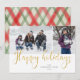 Festiva Tarjeta de fotos Tartan de Gold Script Happy Holid