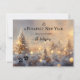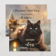 Un Navidad encantador y una tarjeta de vacaciones de Año Nuevo con un gato hermoso con velas y luces brillantes. La parte trasera muestra un paisaje fantástico con árboles de Navidad en colores cálidos dorados y tus textos personalizados. Genial para cualquiera que ame a los gatos.