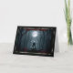 Esta tarjeta de Halloween presenta una mezcla única de lo espeluznante y lo adorable. La imagen central representa a un koala sentado en una rama de árbol en medio de un bosque oscuro y brumoso. La luna llena brilla intensamente en el fondo, proyectando un resplandor inquietante sobre la escena. El bosque es sombrío y misterioso, con árboles altos y desnudos que crean una atmósfera inquietante. A pesar del entorno espeluznante, la presencia del koala añade un toque de calidez y encanto, lo que hace que la tarjeta sea entrañable y apropiada para Halloween.