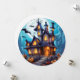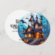 Cuta acuarela Halloween con una casa embrujada, calabazas divertidas y murciélagos. Personaliza fácilmente esta hermosa tarjeta de Halloween con tu nombre familiar.